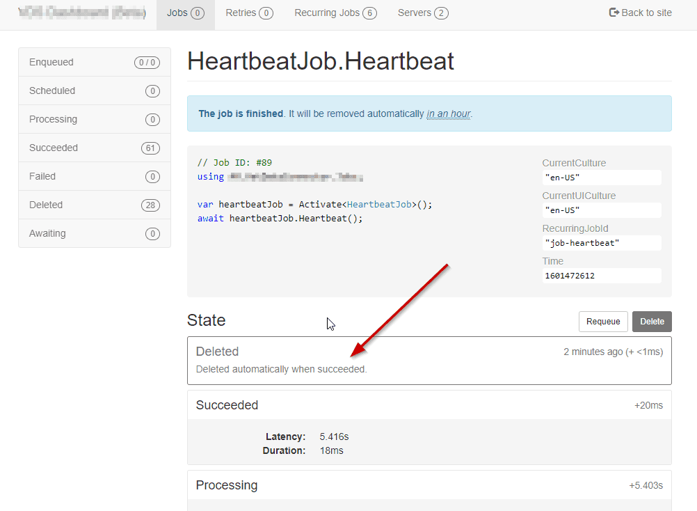 So, everything was in place to address my main fear, right? Yes, but I got a collateral effect. Suddenly I got a lot of noise in the Dashboard - every “Heartbeat” jobs was being registered in the “Succeeded” page.