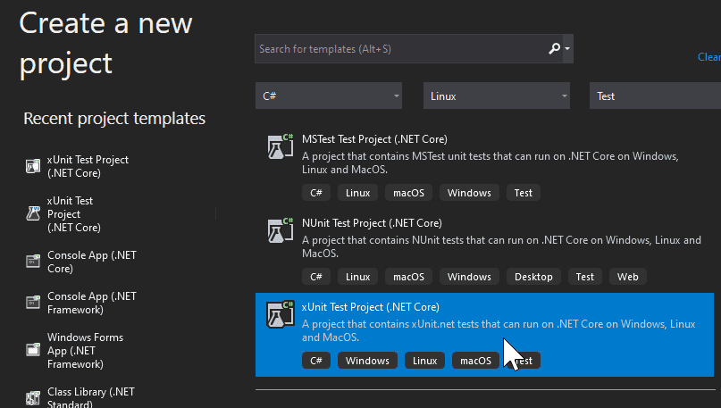 Let’s create a xUnit (my test framework of choice) test project.